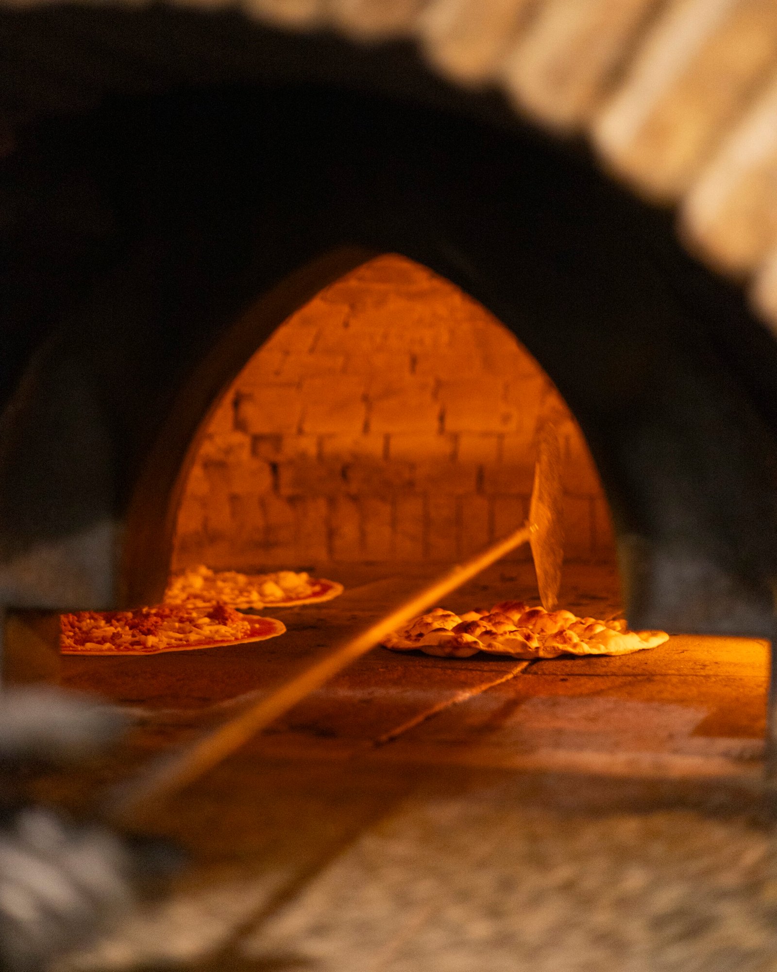 Pomodoro, mozzarella, olive nere, uova, funghi, prosciutto